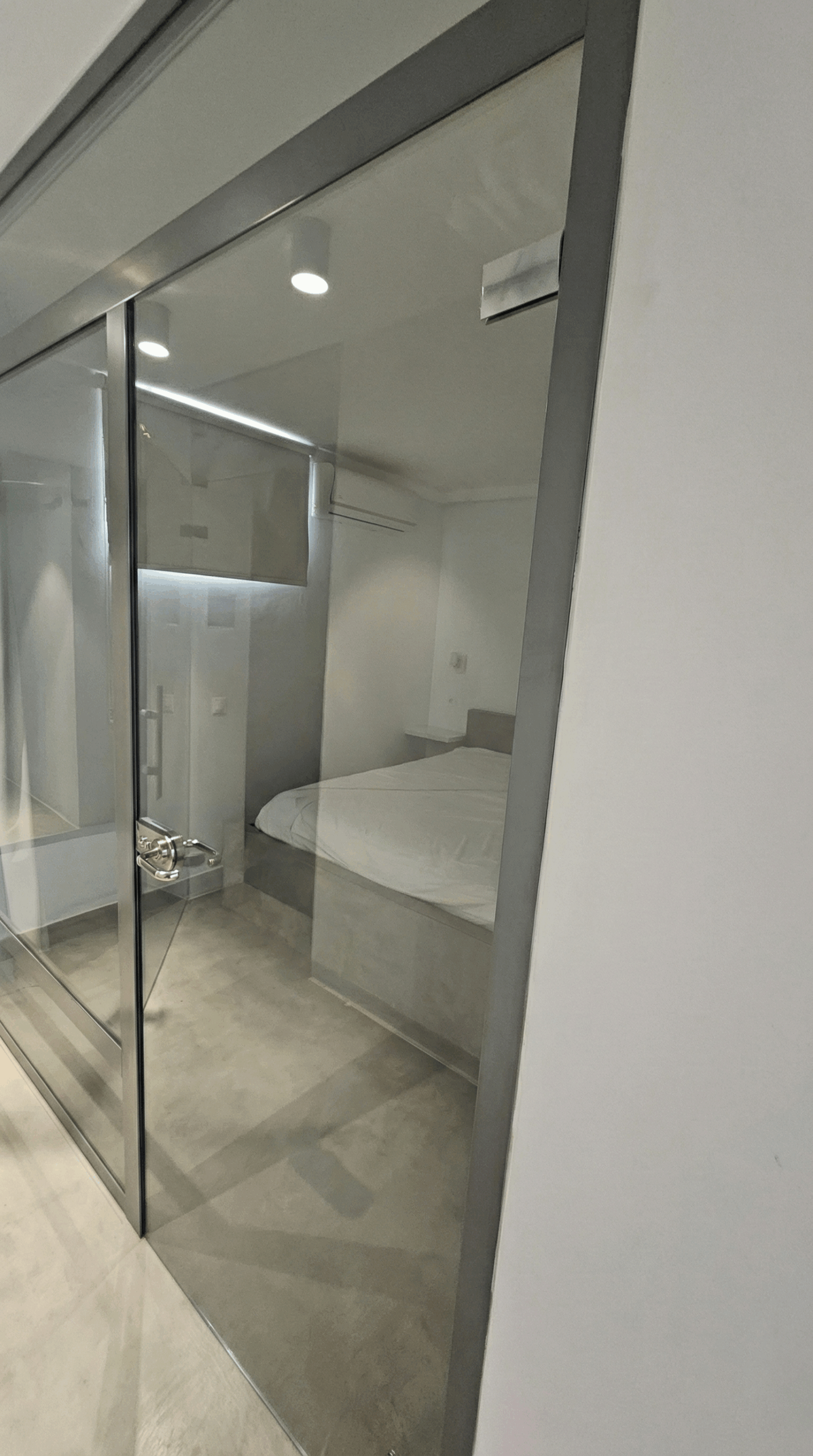 Ανοξείδωτος μηχανισμός κύλισης (Inox 316) με εμφανή ράουλα ανάρτησης.